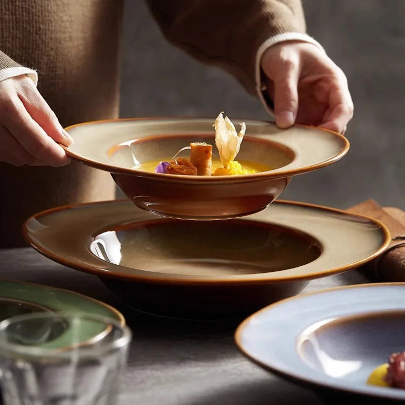 Earth Tone Ceramic Glazed Soup Pasta Plate
