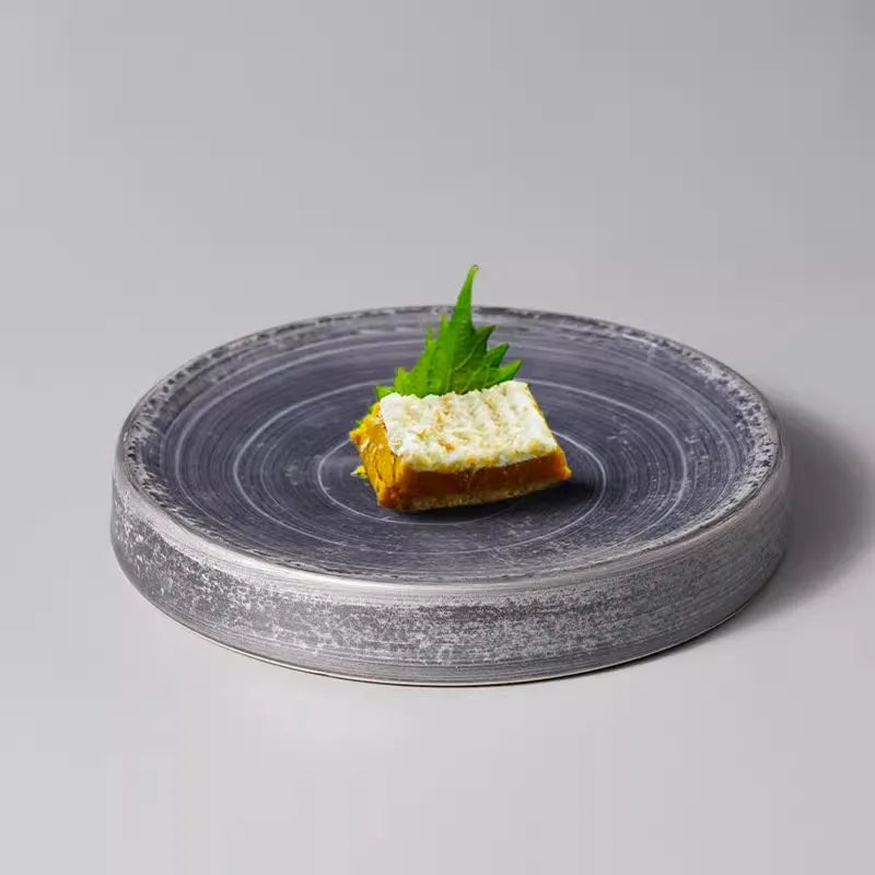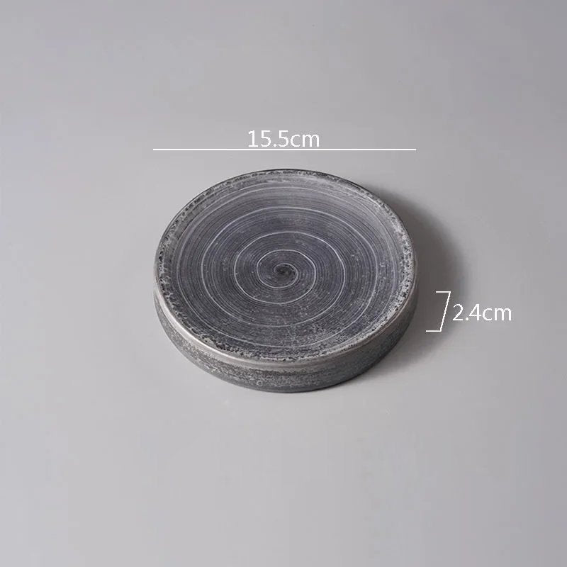 Crafted for visual impact, this charcoal spiral ceramic plate elevates fine dining presentations with its bold shape and hypnotic texture. The pedestal form and industrial glaze finish create a striking stage for mains, desserts, or sculptural dishes. Discover unique, handcrafted ceramic tableware at platesandcutlery.com – where modern design meets culinary artistry.