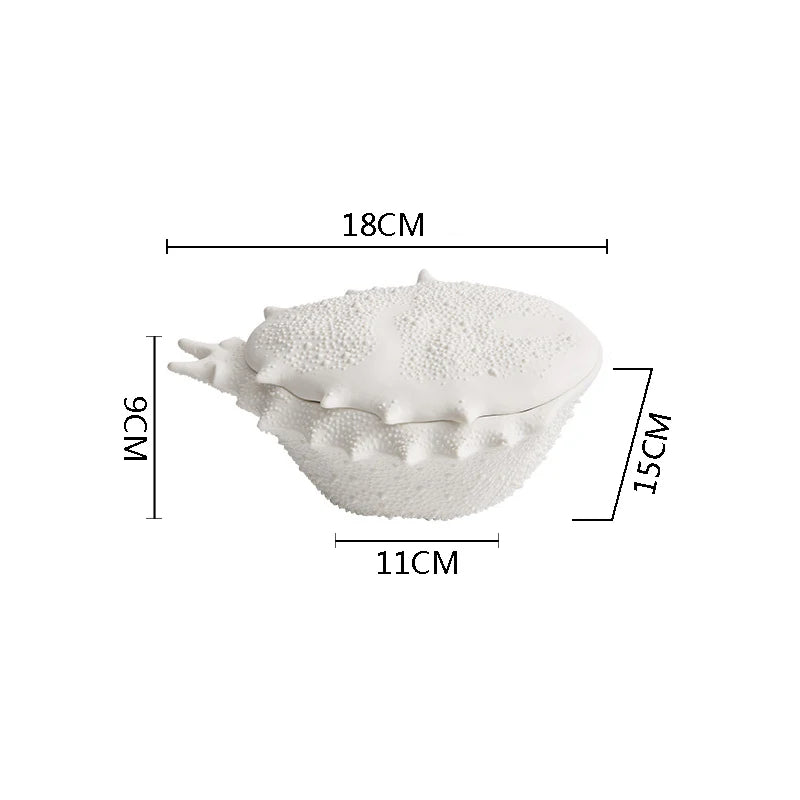 Inspired by the textures of marine life, this ceramic bowl features a fully removable lid and an intricately spiked surface, resembling a sea urchin or coral shell. Its deep, oval-shaped interior is ideal for housing rich soups, broths, or seafood-based entrées, offering a dramatic reveal when the lid is lifted at the table.