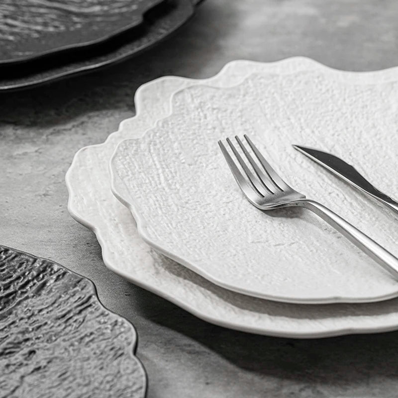 This plate features a delicately scalloped edge that adds a romantic, almost floral elegance to the design. Its gently rippled rim creates a soft, organic silhouette, perfect for presenting desserts, fruits, or gourmet starters with artistic flair.